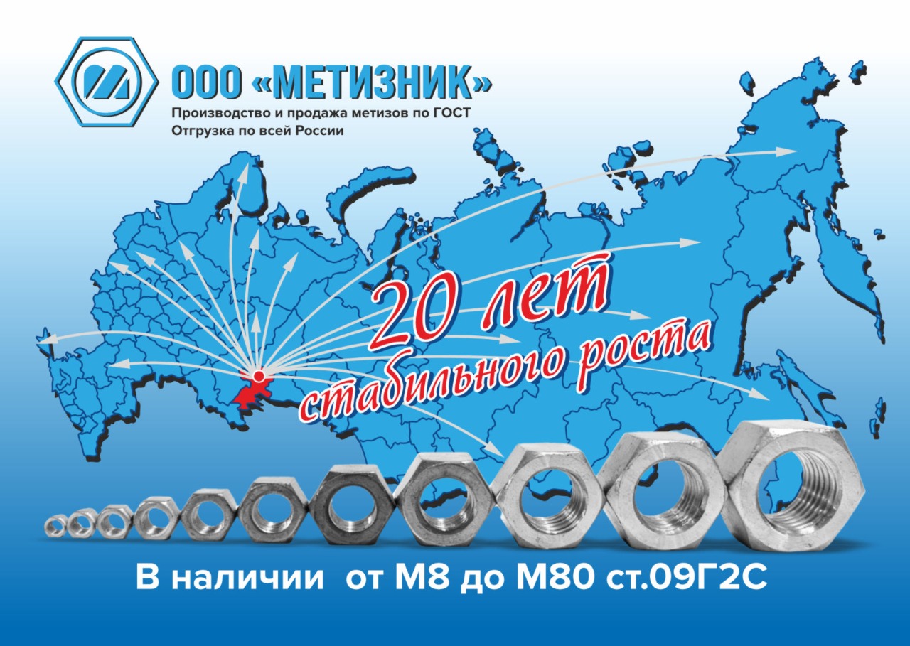 ООО «Метизник» начала свою деятельность 20 лет назад 15 декабря 2005 году. И в декабре 2025г. отпраздновала юбилей 20 лет. С момента создания мы являемся специализированным предприятием по комплектации и поставке метизной продукции приоритетно отечественных заводов изготовителей. Компания показывает устойчивый рост и развитие за эти 20 лет работы.
